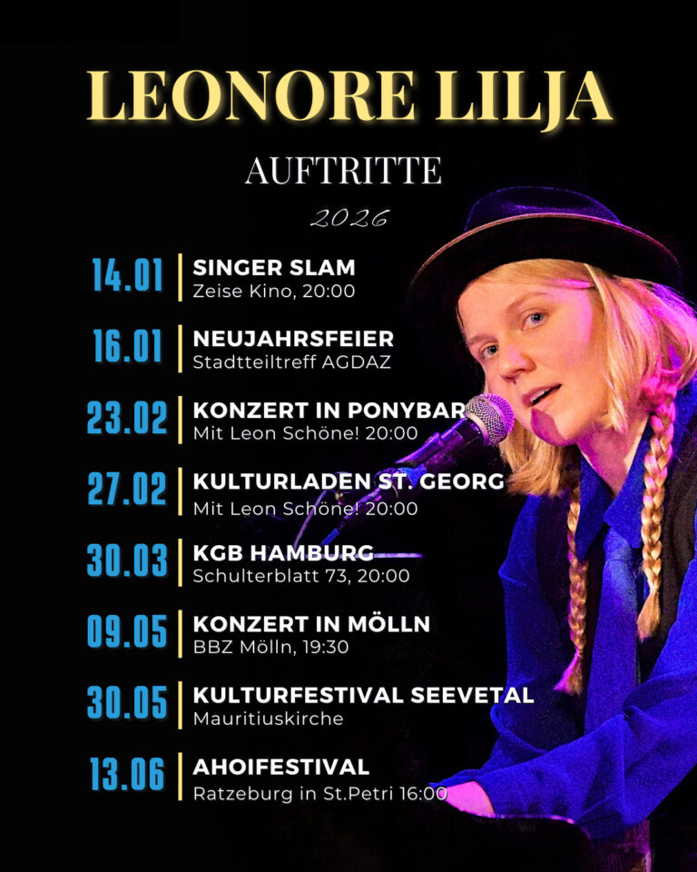 Ich bin Leonore Lilja, Liedermacherin, Pianistin und Autorin aus Hamburg.